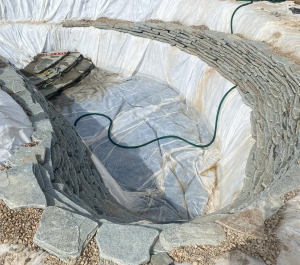 Она предназначена для создания герметичности чаши пруда. Благодаря современным технологиям на рынке можно найти разные варианты гидроизоляционных материалов. Например, бутилкаучуковые мембраны, жидкая резина. В некоторых случаях используют бетон. Мы не рекомендуем делать искусственные водоемы из дешёвых пластиковых чаш, которые быстро выходят из строя и придают ландшафту неопрятность.